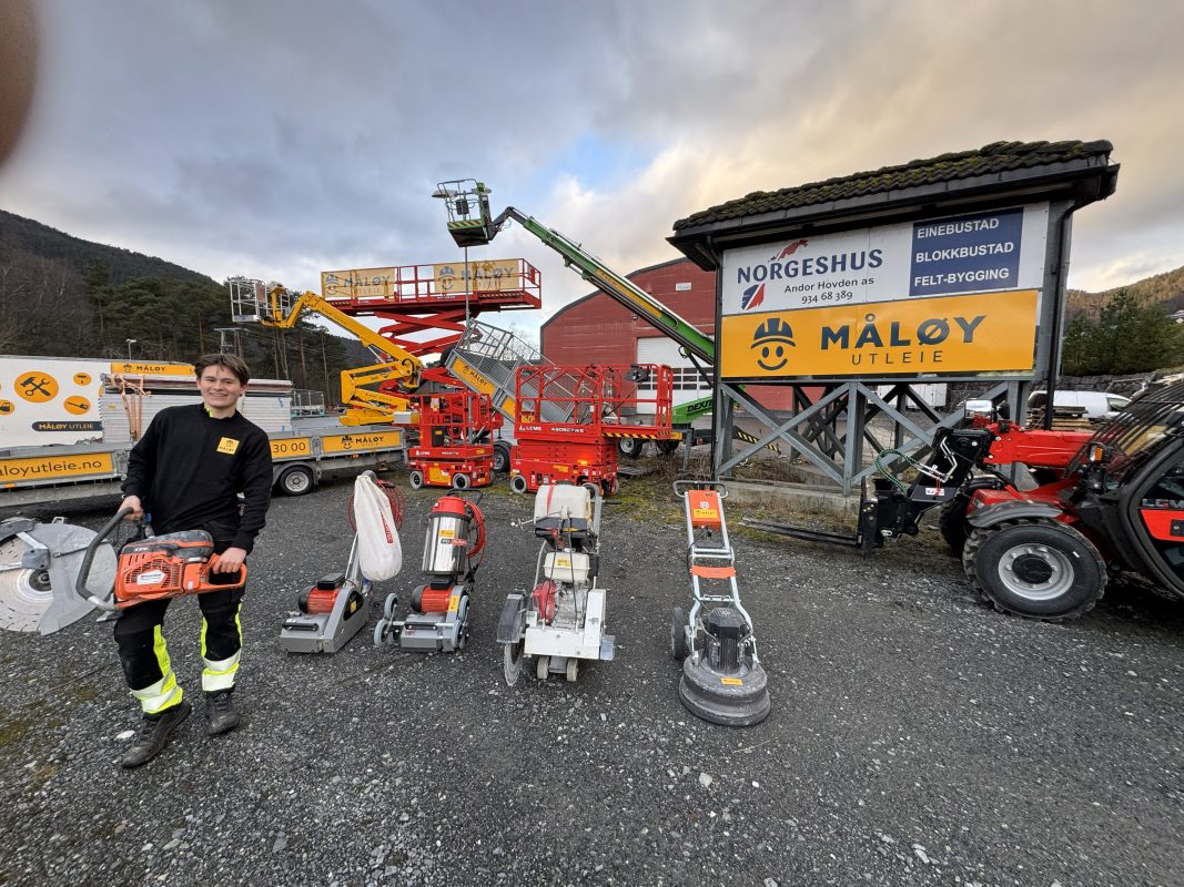 I Desember 2025 har vi åpnet et nytt lager på Nordfjordeid. På lageret vårt kan man hente alt ifra lifter, teleskoptrucker og stillas til diverse utstyr du har behov for. Vi har fortsatt vårt eksisterende lager på Måløy. Vi gjør det enklere å hente utstyret der du foretrekker.